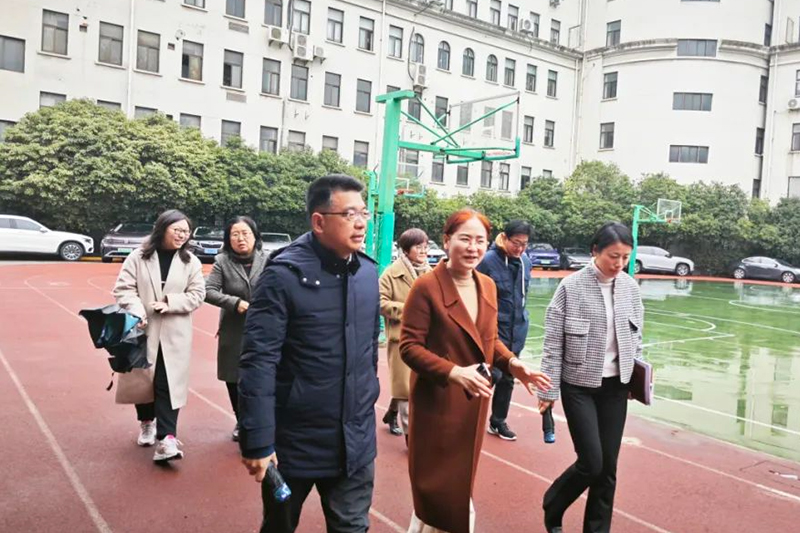 2024年2月22日下午,浦东新区教育工作党委毛力熊副书记、教育局组织人事处吴瑶处长来到我校调研开学准备工作,吕彩玲校长、李可锋书记、陆占萍副校长及中层干部陪同巡视。