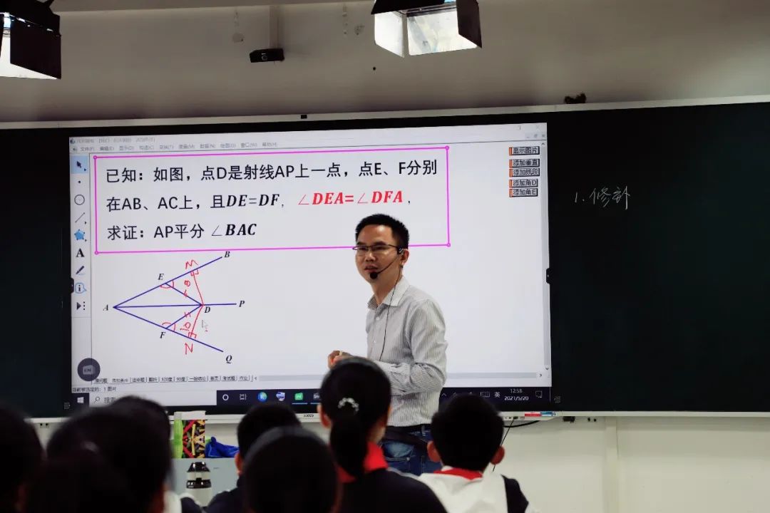 交中初级冯明胜老师为大家呈现的课题是:《我们一起来编题》,爱因斯坦说过“提出一个问题比解决一个问题更重要”,冯老师从课本一道练习题出发,由浅入深,应用“逆行思维法”、“运用图形的运动法”、“条件的殊化和泛化”引导学生发现题目的本质,对题目进行精彩的改编,培养学生开放性、创造性思维,冯老师的课堂流畅而富有深度。