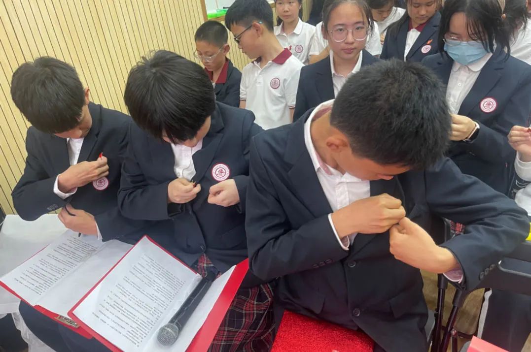 同学们佩戴上红领巾,成为了一名光荣的少先队员的神圣时刻仿佛还在昨天。今天,青春即将赋予我们新的使命,理想在再次庄严的宣誓中,将鲜艳的红领巾珍藏,换上红领巾队标志,向火红的青春致以最美好祝愿:责任在心中,我们有担当。