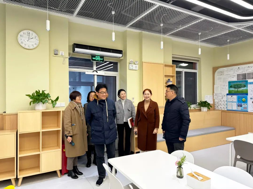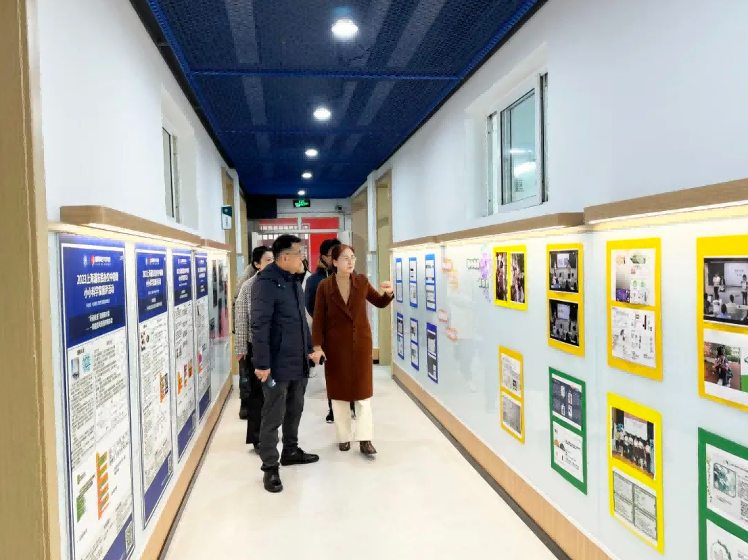 2024年2月22日下午,浦东新区教育工作党委毛力熊副书记、教育局组织人事处吴瑶处长来到我校调研开学准备工作,吕彩玲校长、李可锋书记、陆占萍副校长及中层干部陪同巡视。
